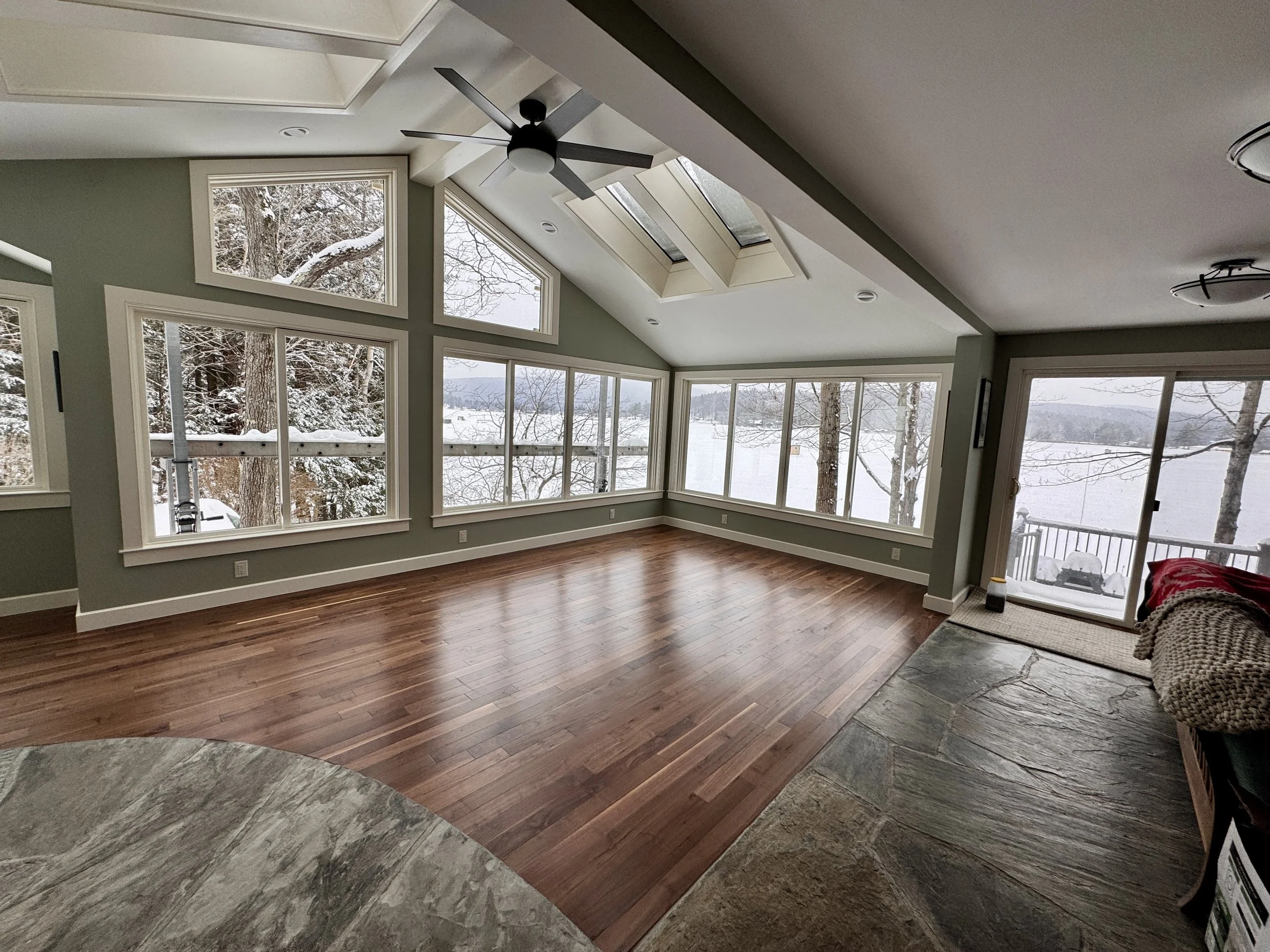 Located on Lake Fairlee in Fairlee, Vermont, this project involved the conversion of an existing screened porch into a fully enclosed, four-season living space.